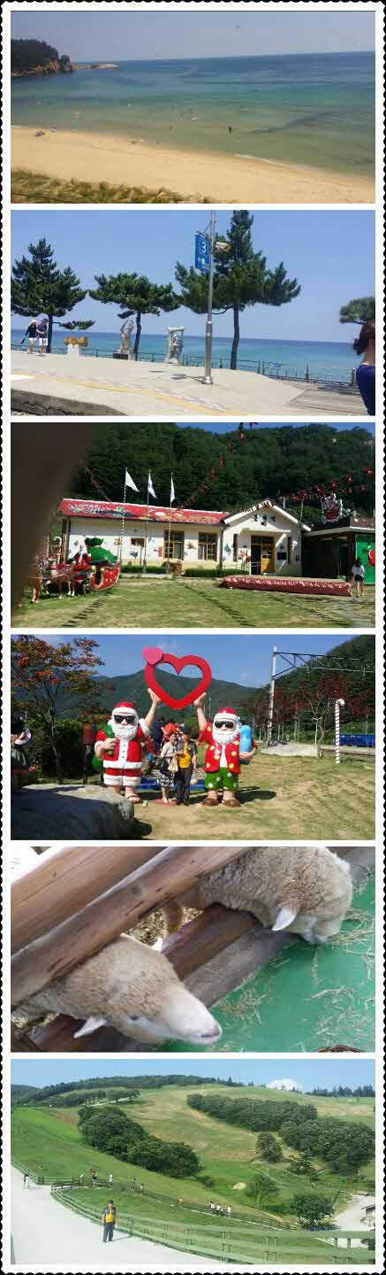 가족여행을 가보았어요 ㅎ 원래는 가족4명다예약햇는데 막내동생은 예약했다 취소했는데 다시하려니 예약이 다차서 안되더라구요 같이갔으면 좋았을텐데.아쉬웠어요 ㅠ 한껏기대하고 6시에 버스타고 분천역으로 달렸어요 ~ 분천역에서 기차타고 출발해서 달리다보니 동해역부터 시원한 바다보여서 기차타면서 바다풍경도 찍었어요 ㅎ 정동진역 도착했는데 사람도정말 많고 바다도 너무깨끗해서 주문진항 도착해서 맛있는회랑 매운탕먹었어요 날씨가 많이 더웠었는데 양떼목장들어가니 시원한바람이 불어오고 풍경도 너무좋아서 반했어요 한국의 알프스라고불린다는데 진짜 산책길 가는내내 푸르고 이색적이다는 느낌을 받았네요 ㅎ 마지막코스라 너무아쉬웠네요 여행내내 심예경가이드님이랑 기사님두분 너무친절하시고 잘해주셔서 더욱 여행하기좋았던거같아요 가족여행으로 온건데 편하고 재밌게 잘갔다온거같아요 특히 엄마아빠가 너무좋아하셔서 더욱더 좋았어요 ㅎ 진짜 재미있는여행이었네요 ㅎㅎ