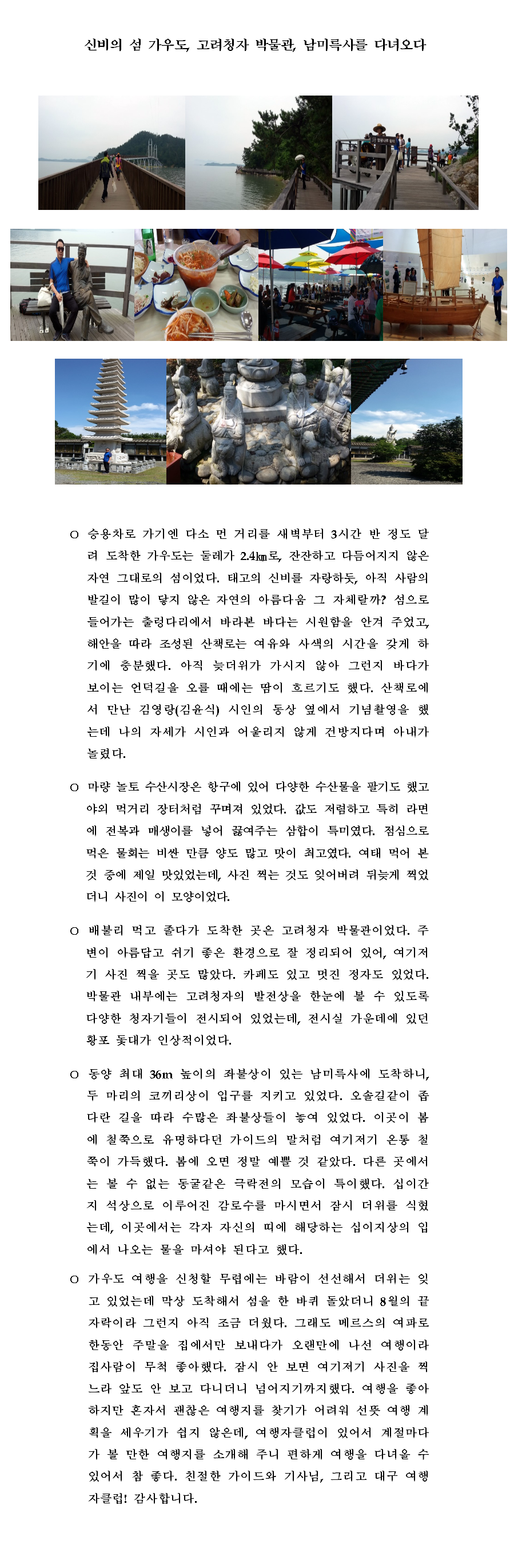 제목 신비의 섬 가우도, 고려청자 박물관, 남미륵사를 다녀오다(8. 29) 등록일 15.09.01 조회 973