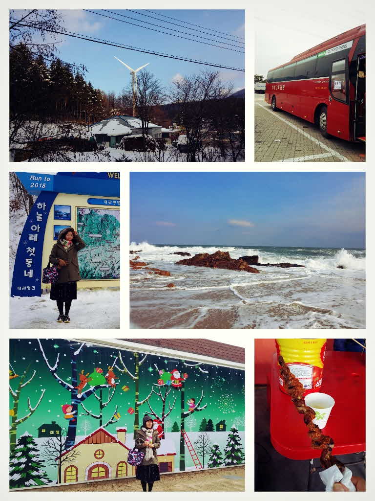눈찾아 떠난건 아니었지만 눈구경을 하게된 강원도 여행. 짱가이드는 어려서 모래시계 본방못보셨다는데 나는 모래시계 본 사람으로서 정동진 여행은 의미가 컸습니다 ^^ 정동진역에서 모래시계 소나무 사진을 찍고 나면 역사 밖으로 나가서 왼쪽으로 5분 정도 걸어가서 굴다리 밑으로 나가 바닷가를 거닐어 볼것을 추천드림. 식사도 뜨끈한 황태 해장국 먹었겠다 셀카봉 들고 힘찬 동해 정동진 바다의 기운을 담으며 즐겁게 보낸 주말이었습니다. 양떼 목장에서는 제설이 미처 완성되지 못해 나의 미끄러운 신발로는 언덕을 오르지 못하고 축사 근처의 온실에서 몸도 녹이고 무료 제공되는 보리차 한잔 마시며 놀다가 양떼 목장 입구에서 파는 양꼬치 사먹으며 주인아저씨의 서비스 옥수수 막걸리도 한잔 마시고 (쓰읍..음주라기엔 ..^^) 해를 넘겨 다시 만난 짱가이드는 그리고 다가올 일출 여행에 관한 |