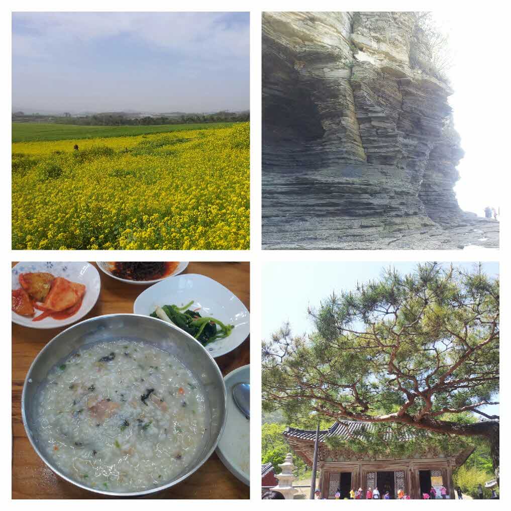 푸르른 청보리밭에서 서로 모여 사진도 찍고, 채석강 바다와 절벽의 단층에 감탄하며 맛있는 백합죽도 먹어보고 고즈넉한 내소사 앞에서 내려다보니 오늘 재대로 힐링하는구나 싶었다, 여행내내 상낭하게 웃으며 사진도 찍어준 이현정가이드님의 재치있는 말에 더욱더 재미있는 시간이었고 하루종일 안전하게 운전해주신 기사님에게도 감사한 마음을 전하며... |