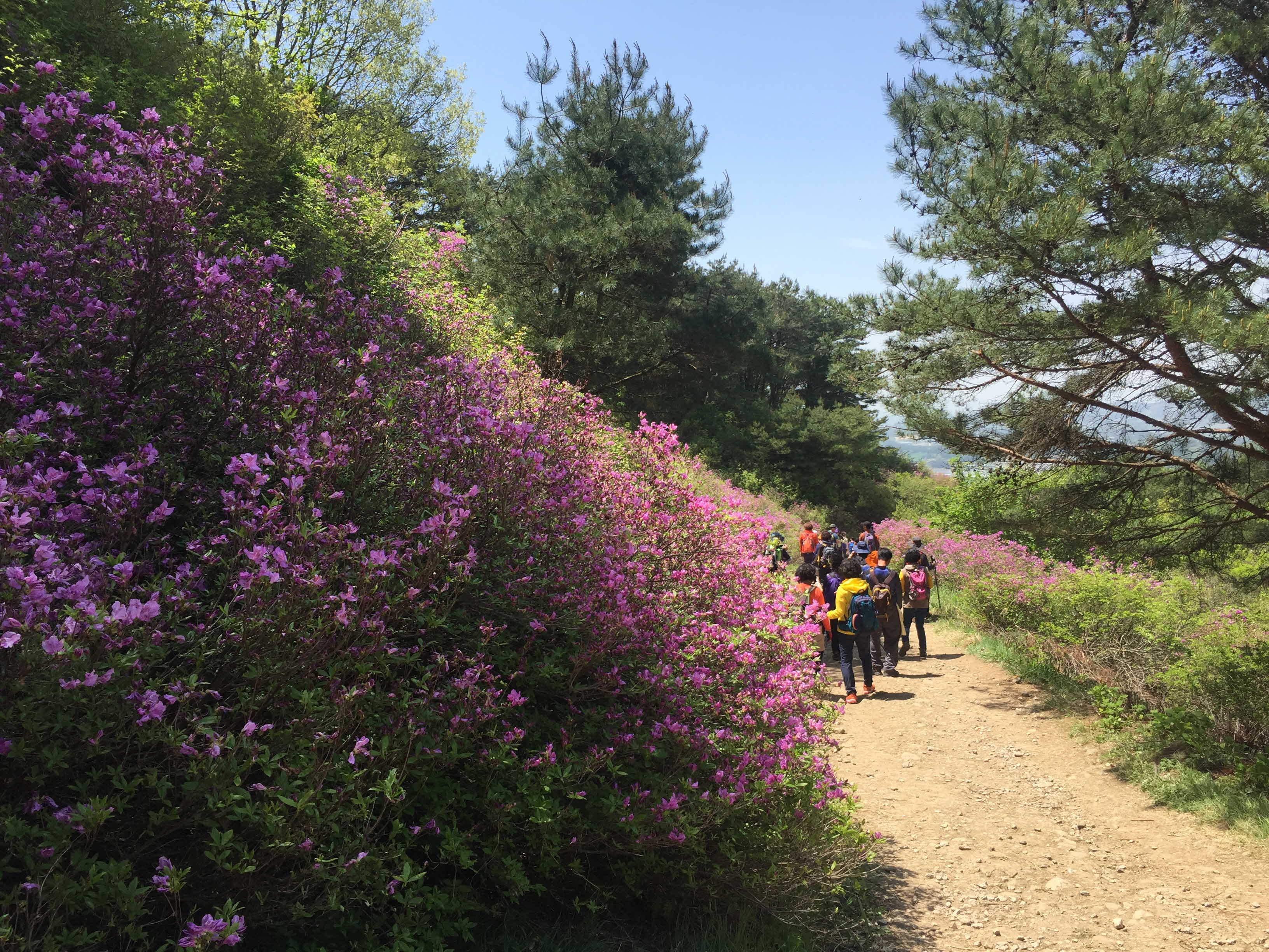 들뜬마음으로 지리산 바래봉행 버스를 탔다. 좌석이 여유가 있어 혼자 여유있게 앉았다. 9시 20분경 주차장에서 내려 바래봉을 향해 걸었다. 평소에 사진에 관심이 있어서 무거운 사진기와 도시락. 물. 커피를 넣은 가방이 너무 무거웠지만 열심히 걸었다. 해발 1950m 정상까지 갈수있을까 걱정이 되기도 했다. 가는 도중에 너무 힘이들어 여러번 쉬어가며 드디어 정상까지 올라갔다. 너무나 많은 사람들이 정상표지판에서 사진을 찍으려고 길게 줄을서서 기다리고 있었다. 도저히 기다릴 시간이 없어서 이미 지고있는 철쭉꽃을 배경으로 풍경사진을 몇컷 찍었다. 친절하신 운전기사님. 가이드님 고마웠습니다. 다음 여행에 또 만나뵙기를 기원합니다.