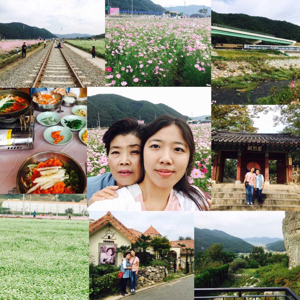 가을을 맞아 코스모스 축제에 가보기로 결정해 어머니와 둘이서 다녀왔습니다.^^ 아침에 버스를 확인하고 타려는데 버스 앞에 서계신 가이드 분이 제 첫 여행때 가이드 해 주셨던 허미정 가이드님 이시더라구요 ㅋㅋㅋ 보고 반가워서 인사도 드리고 저희 어머니도 여행은 많이 다녀 오셨지만 허미정 가이드님이 말도 잘하고 잘 챙겨 주더라고 하시며 좋아하셨습니다. 처음부터 기분 좋게 출발했는데 기사님이 센스있게 다른 버스들과는 다른 노선으로 산청 휴게소로 빠져 이전 여행과는 다르게 조용하고 한적한 휴게소를 볼 수 있었고 그덕인지 코스모스 축제나 원예예술촌 같은 여행지는 요즘에는 코스모스를 봐도 길가에 조금 있는 정도 였는데 북천에 가니 코스모스가 흐드러지게 피어 있고 향기도 진하게 올라와서 오랜만에 꽃향기에 즐길 수 있었고 |