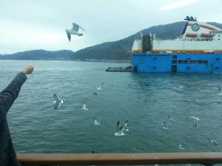 케이블카에 이어 바다로 향합니다~ 유람하며 오동도 근처 바다 경치를 관람할 수 있는 여유로운 시간을 가질 수가 있네요. 갈매기들이 새우깡을 엄청 살앙합니다~ 교감하고 싶다면 미리 새우깡 준비하셔도^^