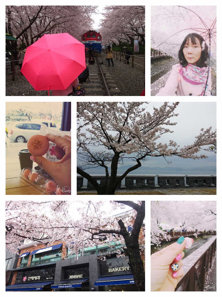 아무 걱정없이 떠난 진해 군항제 비가 오면 꽃비가 날릴테니 그것도 무척 아름다울것이라고 위안을 주신 블로그 이웃님이 계셨거든요. 역시나 천둥번개까지 곁들여진 드라마틱한 날씨에도 날리는 꽃잎에 사람들이 동시에 탄성을 내지르고 진짜 ... 여기가 천국이지 싶었답니다... 진해제과에서 벚꽃 3종 세트(빵,초콜렛.마카롱)사서 안에 마련된 카페창가에 앉아 창밖의 키낮은 왕벚나무를 보니 시간이 멈춘듯...환상적이었습니다. 해마다 내게 이런 천국을 선사해주시는 대구 여행자 클럽 감.사.합.니.다~~~~ (하트 100개 발사)~~~