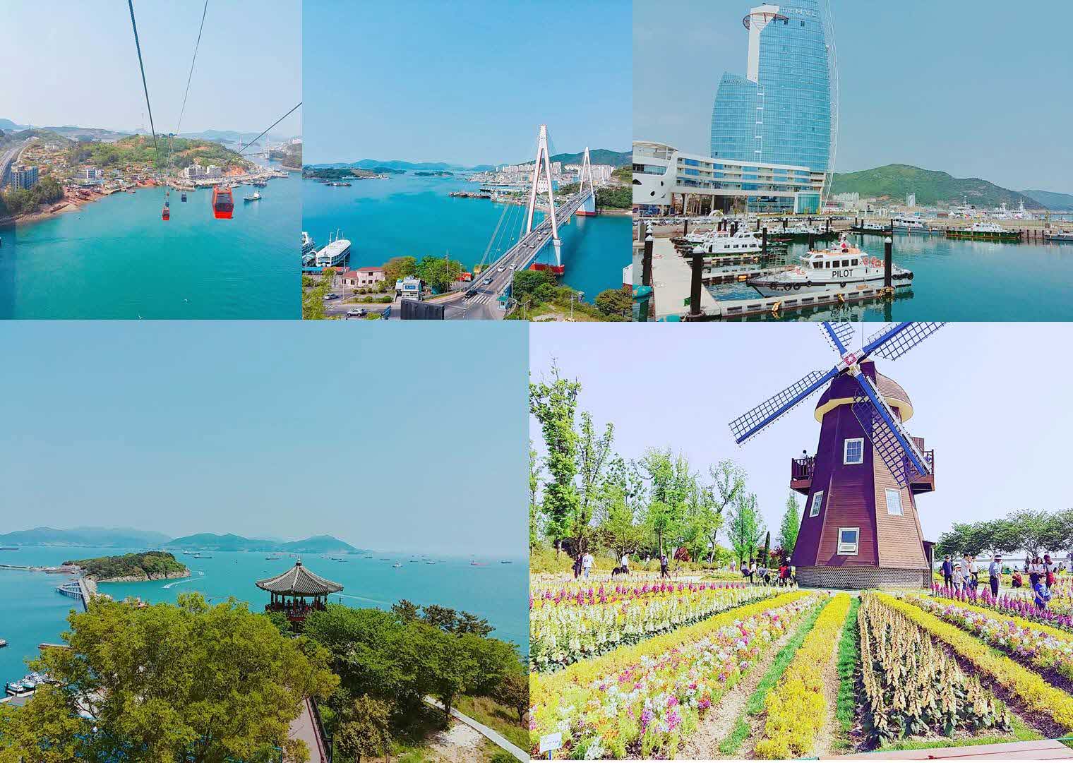 : 장미서 가이드 언니 덕분에 기다리지 않고, 케이블카에 바로 탑승했는데, 케이블카 아래 펼쳐지는 여수의 아름다운 모습을 잊을 수 없습니다. 케이블카에서 내려서 돌산 대교 앞에서 사진을 찍었습니다. 케이블카는 편도 당 15분이며 왕복으로 탈 수 있어서 좋았습니다.