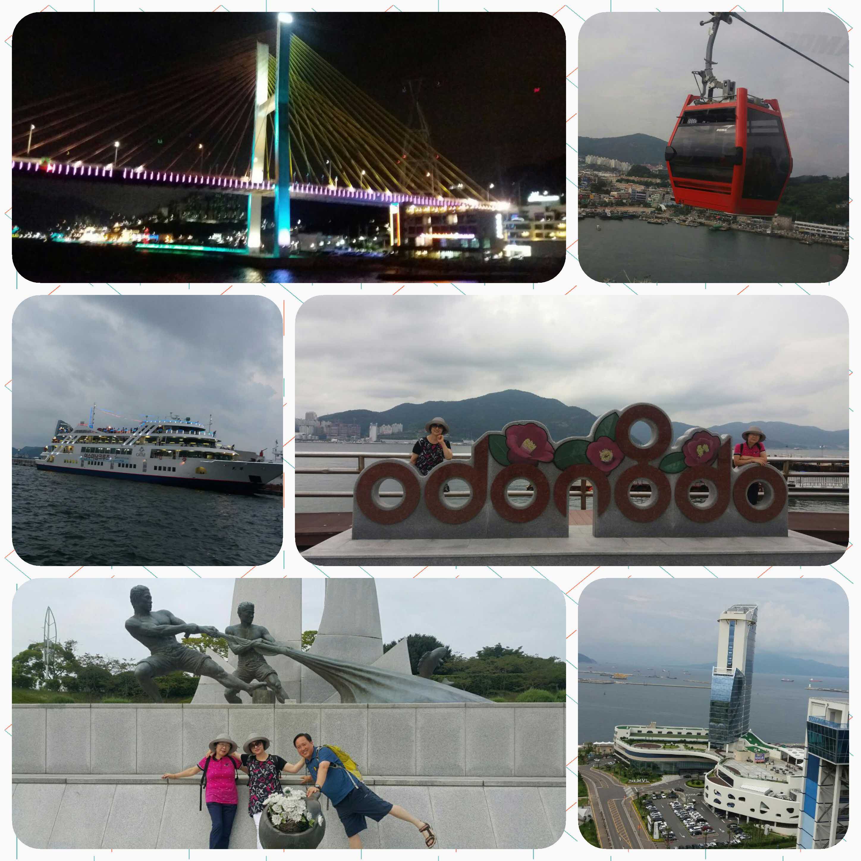친구들과 여행은 언제나 즐겁다. 비가 올랑말랑 하는 습하고 무더운 날씨였지만 바다위를 통과하는 여수 해상케이블카에서 바다의 정취와 스릴감을 느끼며 내려다보는 여수의 풍경... 동백섬을 걸어서 도란도란 친구들과 담소을 나누면서 사진도 찍고 가져간 과일도 먹으면서 즐거운 시간 보내고 왔다 간장게장 정식으로 저녁을 먹고 미남 크루즈 탑승... 낮 풍경과는 또 다른 불빛들이 화려함과 환상적인 풍경을 만들어 내었고... 바다와 빛이 함께하는 여수밤바다 야경투어 선상 이벤트도 너무 좋았다. 선상에서 버스커 버스커의 여수 밤바다 노래 들으면서 친구들과 캔맥주 한잔도 너무 좋았고.. 희안하게 여행 마무리하고 배에서 딱 나오니까 빗방울이 떨어지기 시작했다. 좀 덥긴 했지만 즐겁고 행복한 여행이였다. 2017. 8. 19 수고 해주신 기사님과 너무나 친절하고 귀여운 황가이드님..감사하는 마음 전합니다...^^
