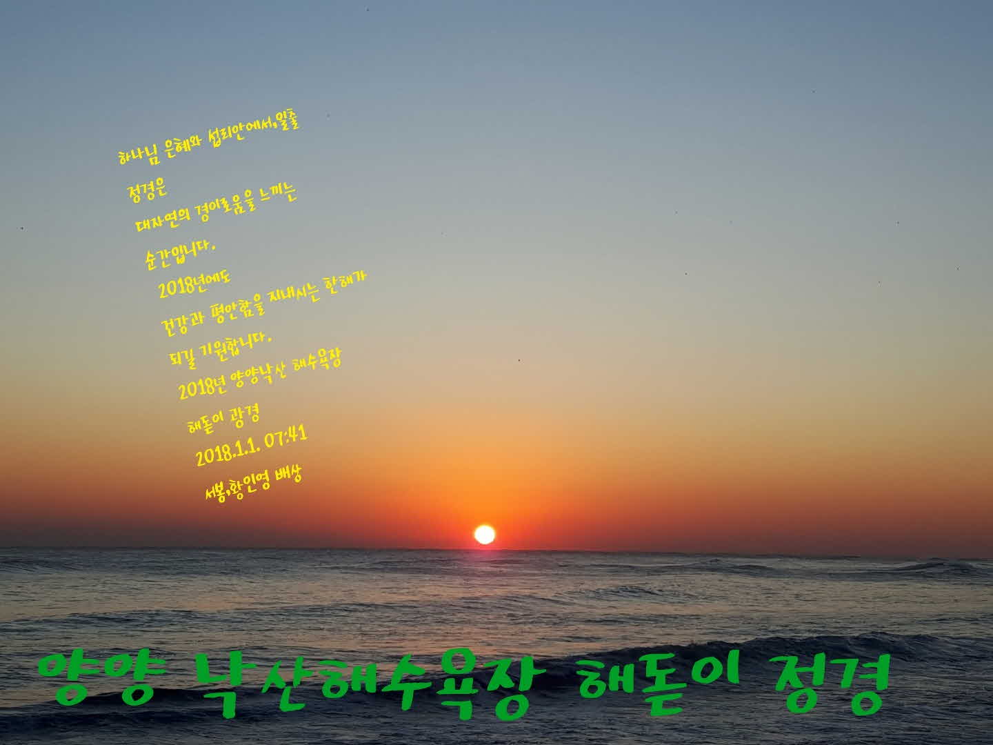 | 제목 | 2018년1월1일 낙산사 해수욕장 해맞이 경이로운 경관 | 등록일 | 18.01.02 | 조회 | 539 |