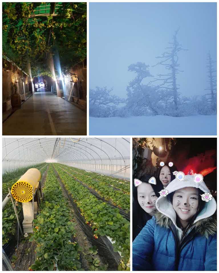 따끈따근한 고가의 신상버스를 타고 친절한 설명과 유머가 가득하신 이쁜 가이드님과 기분 좋은 여행을 다녀왔습니다. 눈구경을 많이 못해본 처자들이라 설천봉에 가서 눈 구경 실컷하고 아름다운 경치 감상과 함께 따뜻한 핫초코 한잔으로 기분이 업업 되었답니다. 아이젠도 없었고 춥기도 해서 정상은 안가고 곤돌라만 타고 국밥에 우동에 든든하게 배를 채우고 다시 내려왔습니다. 생각보다 시간이 너무 넉넉해서. 스키타는 구경도 하고 눈밭에 누워도 보고 눈구경 아주 실컷 잘했습니다. 겨울왕국에 갔다온 이 기분을 공유하고 싶은 생각이 간절합니다. 머루와인동굴은 천장의 장식이 아주 인상적이였구요. 거창 딸기따기 체험은 일단 제법 맛도 많이 보고 통에 가득가득 담아서 기분이 좋았습니다. ^^ 돌발퀴즈를 맞혀서 딸기잼 득템도 했구요... *^^* 차도 밀리지 않아서 대구에 일찍 도착해서 친구들과 뒷풀이도 잘했답니다. 생활의 활력소를 여행에서 찾는 저는 어떤 여행을 또 준비할까 하는 마음에 즐겁게 하루하루를 보냅니다. |