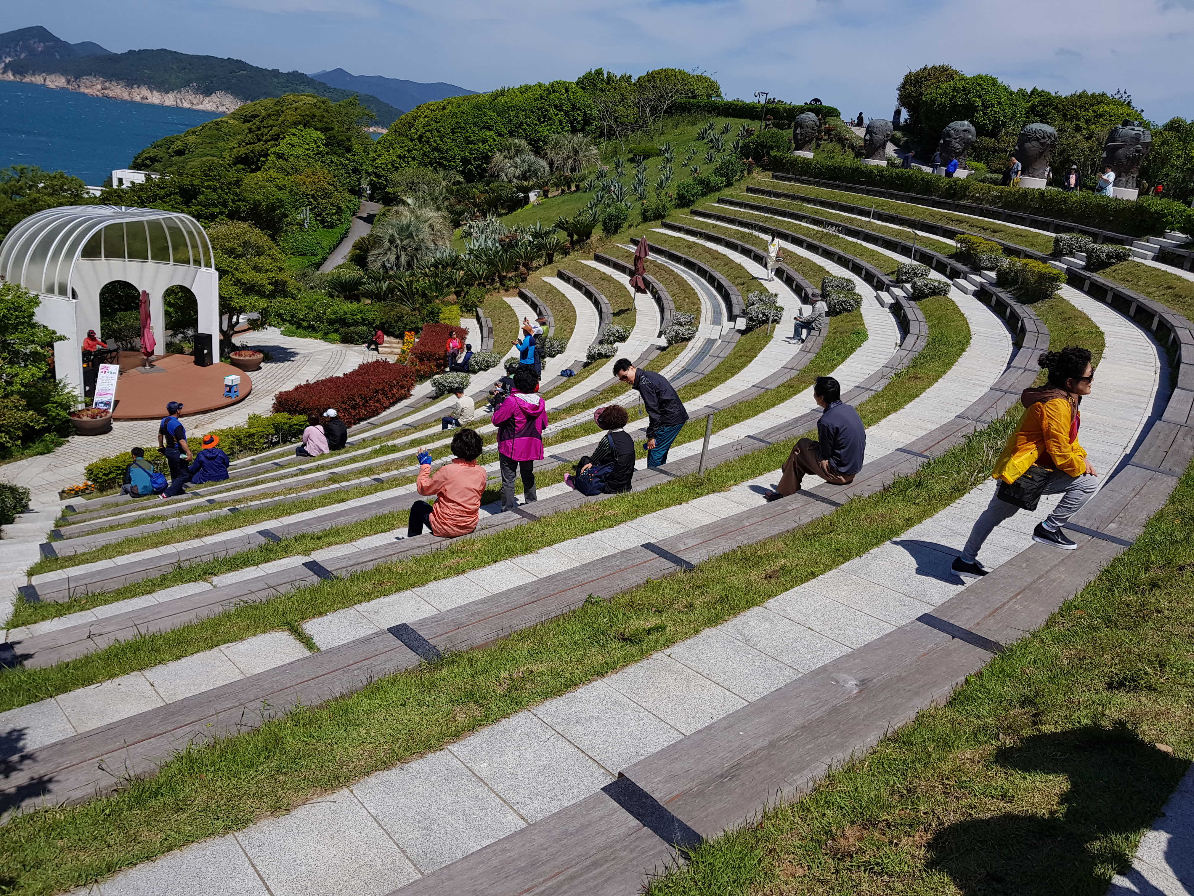 물론 세아들은 부모님께 맡기고 둘만의 여행을 하기로 했습니다. 외도를 사이트에서 예약하고 여행준비를 했는데 출발전날밤 갑자기 큰애가 39도가 넘는 고열이 나는 바람에 취소해야하나 고민을 하던중 그래도 어렵게가는 여행인데 싶어서 부모님께 양해를 구하고 아침 6시 동아쇼핑에서 버스에 올라탔습니다. 바로 다름아닌 혹시나하는 염려가 현실이 되었네요. 날씨는 무척 좋은데 바람이 많이 불어서 외도가는 배가 결항되었다는 소식이었습니다. 그리하여 박은화 가이드님이 바람의 언덕을 포함한 대체코스를 말하셨고 추가요금을 더내고 출항이 가능한 장사도를 가는 의견을 내셨습니다. 대다수 분들이 장사도로 의견이 모아졌지만 일부 몇분들이 그냥 대체코스에 찬성하여 대체코스로 가게 되었습니다. 원래 불가시 대체코스가 예약시 있었으므로 외도 여행은 다음에 가자고 와이프를 달랬습니다. 그런데 대구여행자클럽에서 추가요금없이 장사도로 가도록 배려를 해주셨고 대체코스 찬성하신분들도 가이드님의 설득으로 우여곡절 끝에 외도가 아닌 장사도로 가게 되었습니다. 그리하여 배를 타고 장사도 부두에 도착했는데 태풍이 오는것처럼 바람이 많이 불어 관광이 힘들겠구나했는데 반대편으로 넘어가니 햇빛은 따뜻하고 근래에 보기힘든 파란 하늘에 솜사탕같은 구름과 주위 섬과 바다전경, 화려한 꽃과 정원이 힐링이 되었습니다. 별그대 드라마 촬영지로 김수현과 전지현 포스터가 곳곳에 있었습니다. 그리고 장사도는 배내리는 곳과 타는 곳이 달라서 화살표를 따라 구경을 해야하더라고요. 장사도 여행후 배가 엄청고팠는데 통영에 와서 유명한 멍게비빔밥을 한 그릇 뚝딱하고 동피랑 마을의 벽화구경도하고 아이스크림도 먹고 카페에서 음료수도 마시면서 나름 여유를 부렸네요. 물론 그밑에 있는 통영중앙시장에서 필요한 건어물도 많이 샀습니다. 가이드님이 시간을 많이 주셔서 여유롭게 자유여행처럼 보내고 왔습니다. 계획과 달리 외도가 아닌 장사도여행을 갔지만 나름 운치있고 몸과 마음이 정화되는 힐링을 하고 왔습니다. 와이프는 다음에도 좋은데 있으면 또 둘이 가자고 하네요.