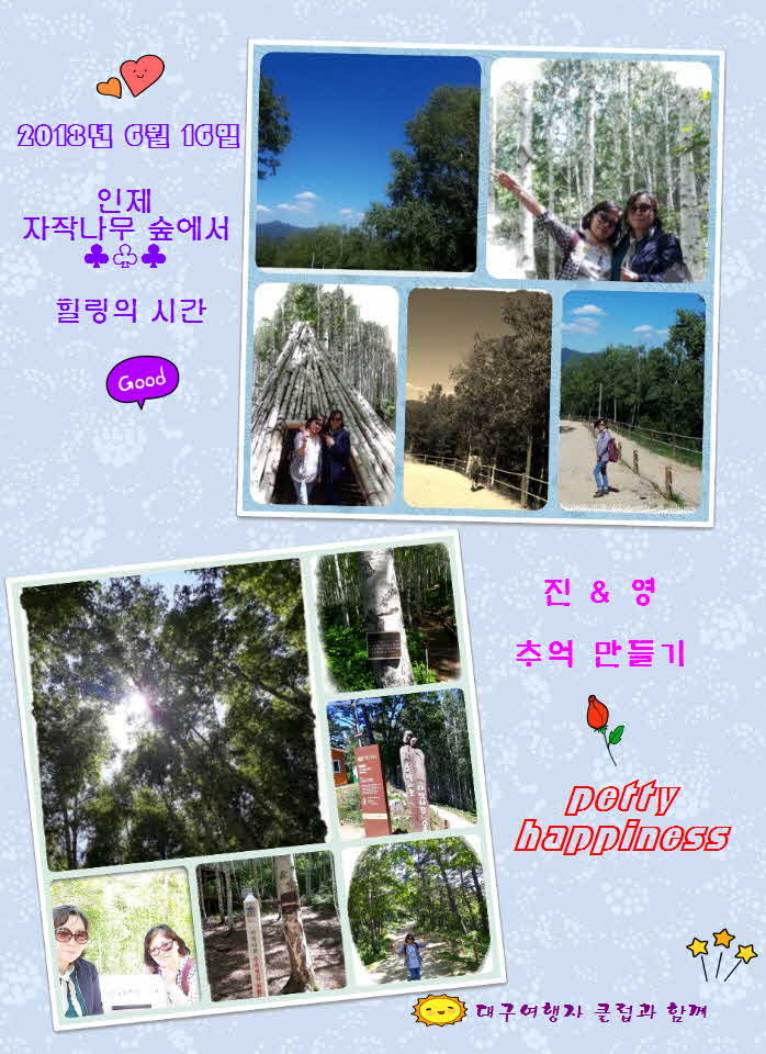 장시간... 버스를 타고... 아침에 손수 김밥을 준비해서 휴게소에서 아점을 먹고, 차안에서 간식을 먹고...수면을 취하고... 도착한 자작나무의 숲..