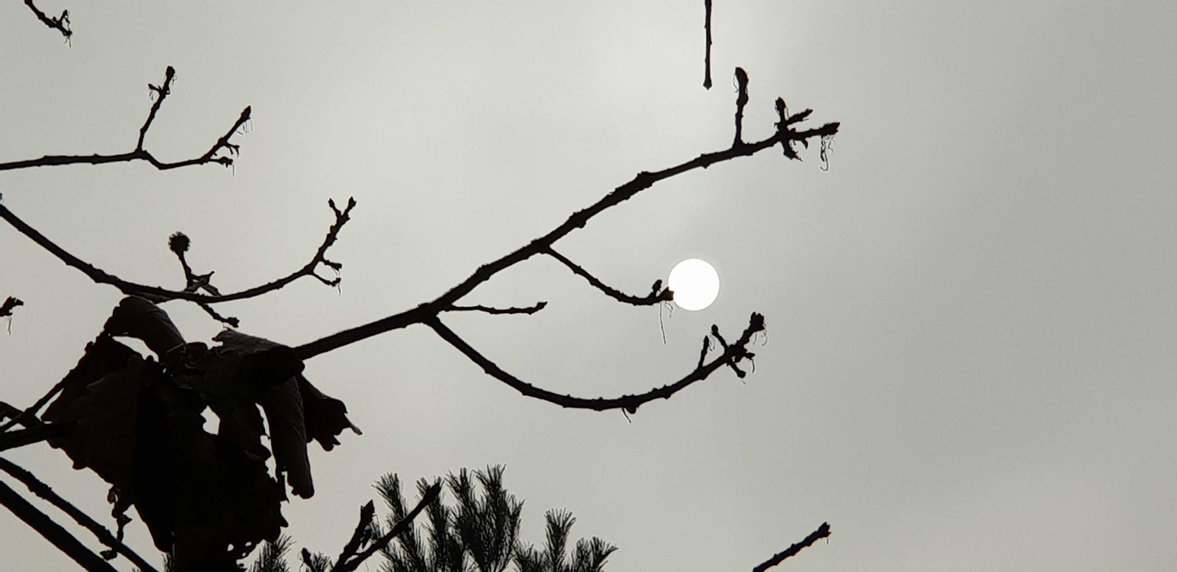 선돌에서나오다찍은해가나뭇가지에달려있게찍었네요