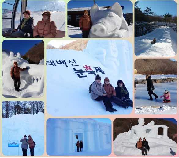 거대한 눈조각 앞에서 황홀하게 한참을 바라보았습니다. 우째 저래 만들었을까~ 대구에서 보기힘든 풍경을 실컷 감상하면서 사진도 많이 찍었습니다. 가이드님이 찍어준 사진도 있습니다.