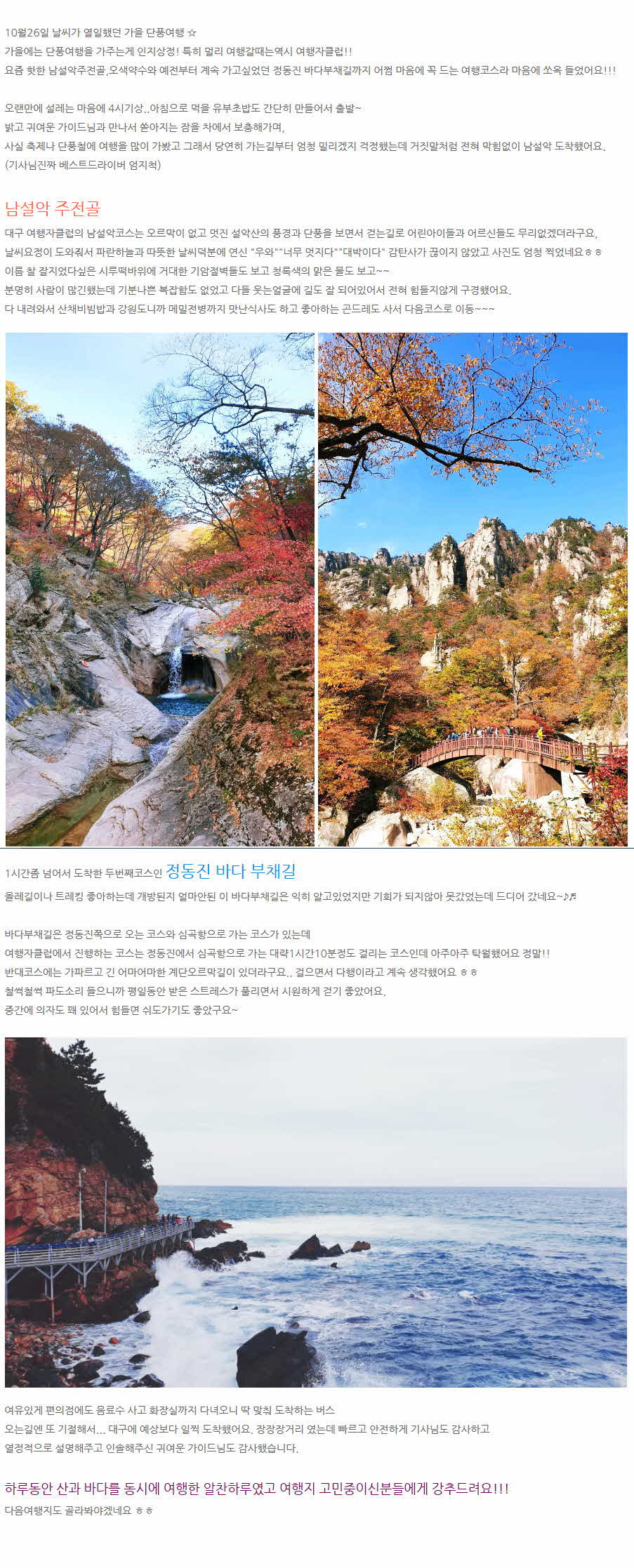 제목 강추**남설악/정동진 바다부채길**강추 등록일 19.10.27 조회 427