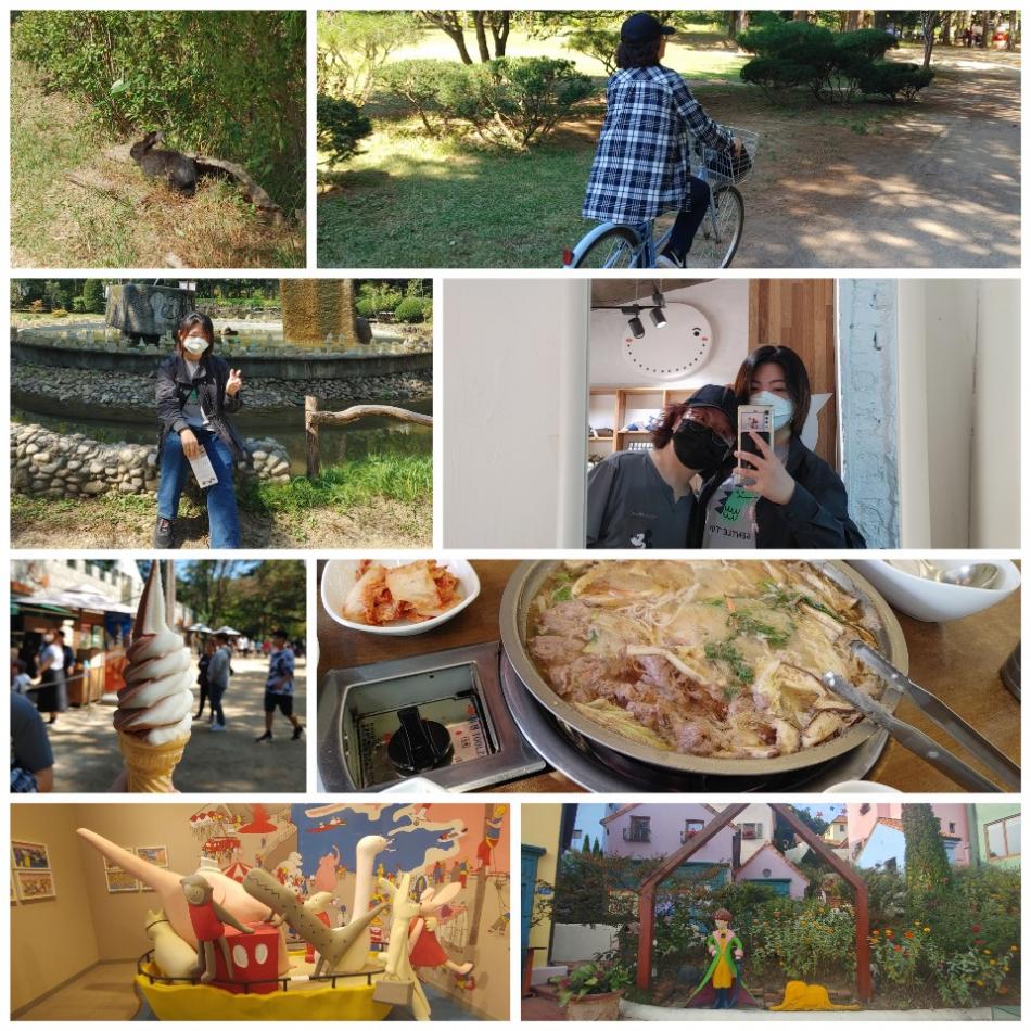 오랜만에 여행 다녀와서 너무 즐거웠어요~ 자유시간이 길어 보고 싶은 곳을 많이 둘러보았는데요. 남이섬에 볼 거리도 많고 날씨도 좋아 자전거 타고 다녔는데 바람이 시원해 좋았습니다. 조금 아쉬운 점은 돌아다니느라 정신 팔려 예쁜 카페가 많았는데 못 가보았네요.