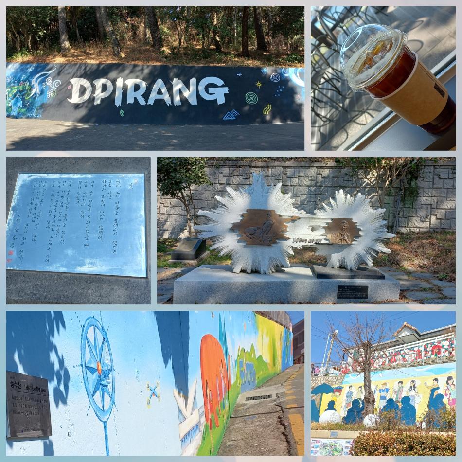 1월 부산여행을 시작으로 2월은 지심도 하늘과 바다가 쌍둥이라해도 과언이 아닐만큼 민트와 블루가 적절하게 섞인 아름다운 빛깔과 바다위의 윤슬은 바다멍 하며 생각비우기 좋은 시간이었다. 지심도의 지도유형은 군함을 닮았다. 일제강점기때 일본군대의 요새,포진지,탄약고,일본식 가옥의 사택, 역사속 아픔을 간직한 곳이라 그런지 동백꽃들도 움츠러들고 소심하게 보였다. 욱일기를 게양했던 곳은 2015.08.15. 광복70주년을 맞아 태극기 게양대로 바뀌었고 휘날리는 태극기를 볼 수 없어 아쉬웠지만 주민들의 애국심을 엿볼 수 있었다. 꽃들이 흐드러지게 피고 지고 꽃하트를 만들 수 없었다. 지금부터 꽃이 피는 시기라고하니 3월쯤 방문하면 만개한 동백섬을 볼 수 있을 듯하다. 오는 봄을 시기하는 겨울바람이 쌩하니 추웠다. ㆍ통영ㅡ동피랑 벽화마을과,굴국밥 남망산조각공원 동양의 나폴리라는 통영 통영과 나폴리 사이의 거리는 8950km 실제 나폴리를 수채화풍경으로 그렸다는 벽화들이 작품마다 사진을 찍게 만들었다. 나폴리에서 통영 8950ㅡ제목 참 근사하다! ㆍ늦은 점심으로 먹은 굴국밥 싱싱한 굴은 입안에서 톡 터질 때 그 맛과 향이 일품이었다. ㆍ식후 산책은 남망산조각공원 초입부분 도로인근에는 꽃으로 유명한 시인 김춘수 님의 시비가 있고 공원에는 통영 최초의 서양화가 김용주 님의 작품 닭을 소재로 한 방위 라는 작품도 눈에 들어왔다. 왜 제목이 방위인지는 설명을 읽어보면 아하 라고 깨닫는다. ㆍ카페에서 통영의 특산물인 치자차를 구입하고 아아를 테이크아웃하고 공원을 돌아보며 따뜻한 마음의 힐링이되는 시간이었다. ㆍ끝맺음ㅡ지심도로 향하는 배의 이른 탑승 시간을 맞추기위해 빠르지만 안전운행으로 애써주신 기사님과 친절함이 유치원선생님같은 이은민가이드님 감사했습니다. 아, 대우조선해양을 지날 때 기사님의 깜짝이벤트퀴즈 좋았어요. 기억에 남을 것 같아요. 쌀90가마,김치의 주재료인 배추1300포기,소7마리,돼지70마리 소.돼지의 숫자가 정확히 기억안나지만 아무튼 엄청난 1일소비량에 깜놀이었어요. 윤슬이 아름답게 빛났던 바다와 만개한 동백꽃터널을 꼭 한번은 보고 싶은 여행지 지심도&통영 후기였어요. 23.02.25. |