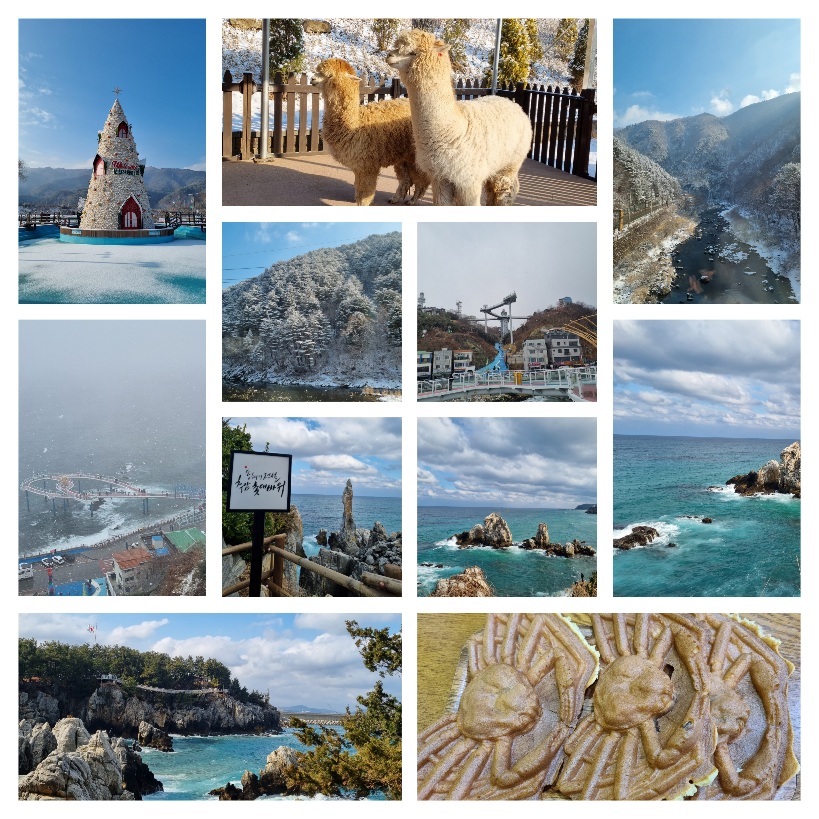 황현지 가이드님의 친절한 차량안내 메세지로 절친들과의 여행이 시작되었습니다. 오랫만의 여행이라 모두 설레이는 마음으로 출발~ 분천역에서 동해까지 가는 기차안.. 마주앉아 간식 먹으며 바라보는 창밖 풍경은 정말 멋지드라구요~ 전날 눈이 많이 와서 더 좋았던거 같습니다. 짱짱!! 동해역 도착후 묵호항 이동하는 길에도 날씨가 정말 좋았는데.. 묵호항 도착하자마자 대구에서는 절대 볼 수 없는 펑펑 내리는 함박눈~ 그래서 도째비꼴,해랑전망대가 더 기억에 남아요. 맛난 점심,전망좋은 카페에서 따땃한 커피도 한잔 마시고 촛대바위 이동.. 언제 눈왔냐는듯 파란 하늘에 푸른 바다.. 눈호강 제대로 했습니다! 촛대바위,형제바위,출렁다리 너무너무 이뻐요~ 꼭 가보세요~~ㅎㅎ 나름 날씨요정인데 선방했습니다~~^^ 황현지 가이드님 가는곳마다 친절한 설명 이쁜사진 감사드리고 기사님 안전운전도 감사드립니다. 덕분에 좋은사람들과 함께한 너무너무 기억에 남을 여행이었습니다. 다음달 매화축제 때 다시 만나요^^ |