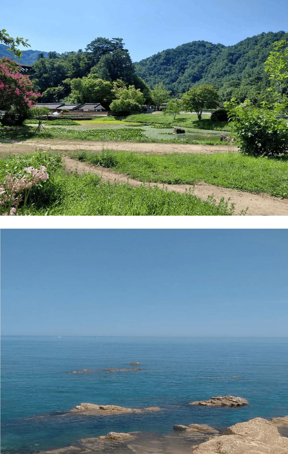 또 더운 여름이라 많이 걸으면 지칠것 같아 많이 걷지않는 여행이라서 가게 되었다 첫번째코스로 불영사 가는길이 불영계곡을 따라 걸어가는데 붉은색을 띤 금강송을 볼수 있고 숲의 나무들이 커서 점심식사는 가이드님이 추천해준 물회와 회덮밥을 맛있게 먹고 두번째코스는 해안스카이레일을 왕복40분 타고 탁트인 바다와 아래로 보이는 깨끗한 바다를 한눈에 볼수 있고 세번째코스로 죽변역에서 포항역까지 누리로 동해선 기차여행은 에어컨 빵빵 좌석사이가 넓어서 몸이 자유롭고 대구여행자클럽 회원들은 버스내에서 조용하게 서로 배려하는 매너있는 수준 높은 모습이 오고갈때 |