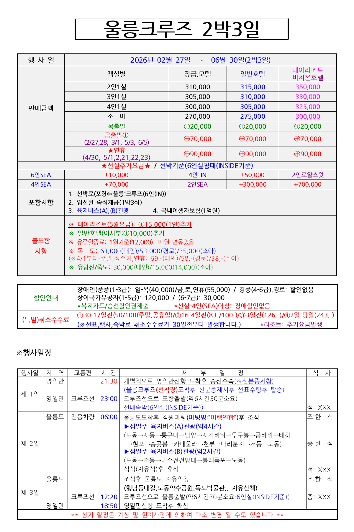 [매일출발] 2026 울릉도&독도 울릉크루즈 2박3일
