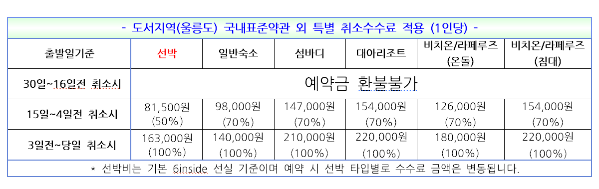 고객께서 예약하신 사항(출발일자/요일/행선지등)은 출발하루전 문자로 일괄 발송하니, 본인의 예약사항이 틀릴 경우 바로 연락 부탁드립니다. (혹, 여행출발 후 연락시 당일취소로 처리 됩니다)