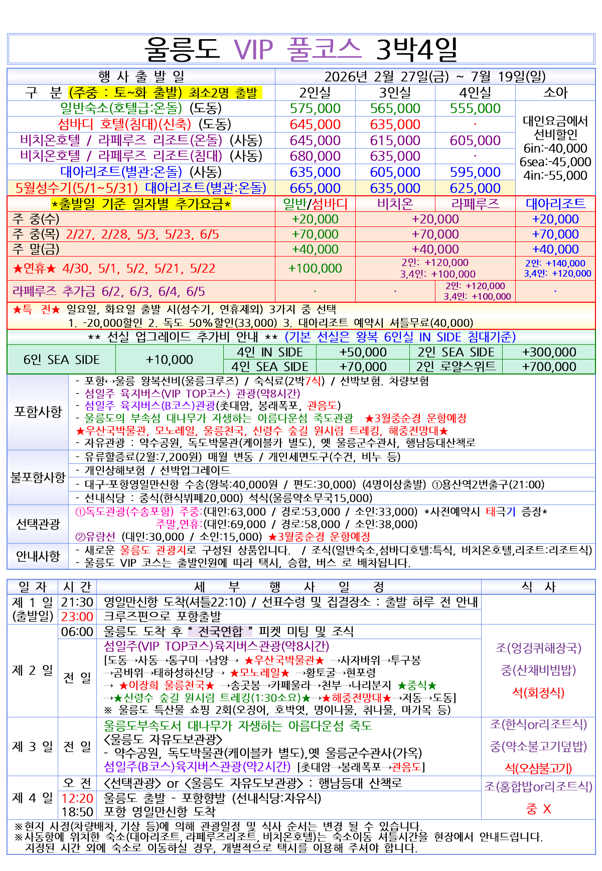 [매일출발] 2026 울릉도&독도 울릉크루즈 vip 풀코스 3박4일
